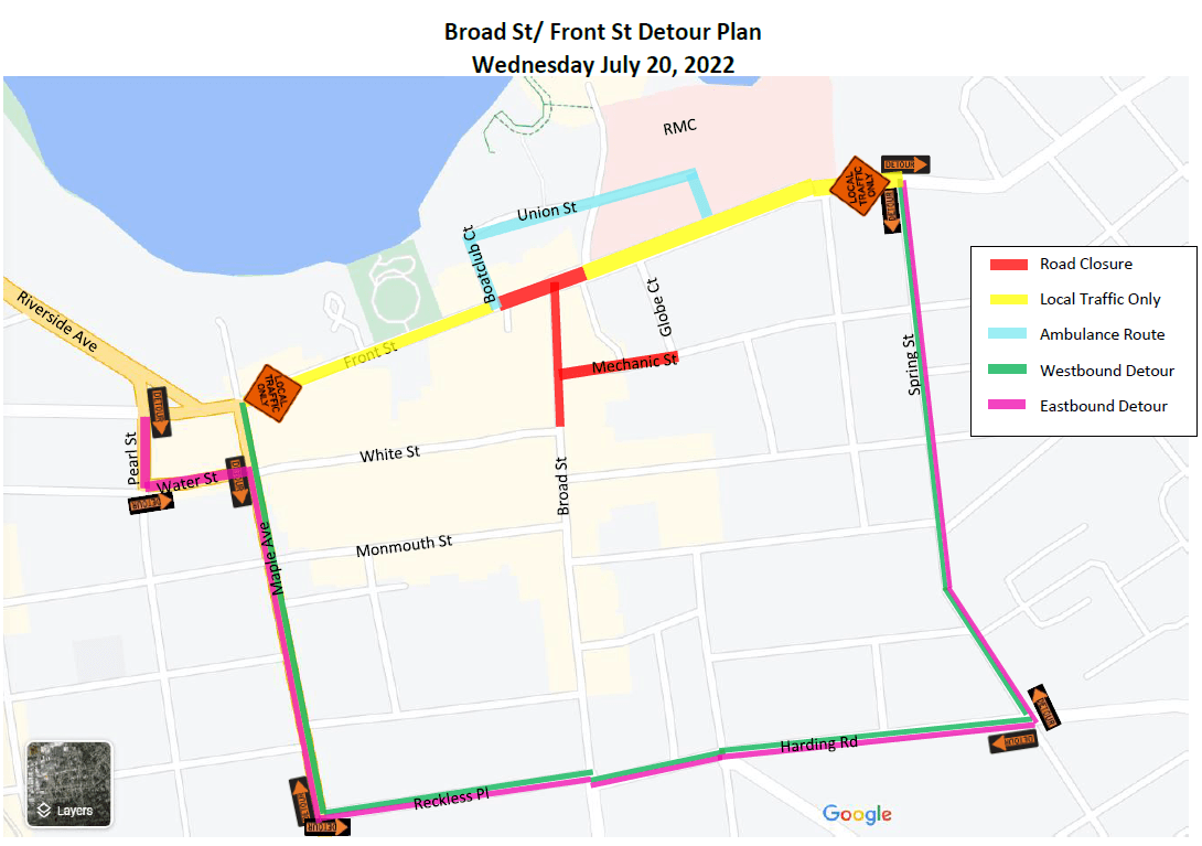 - Broad St will be closed from White Street to Front St starting at 7AM