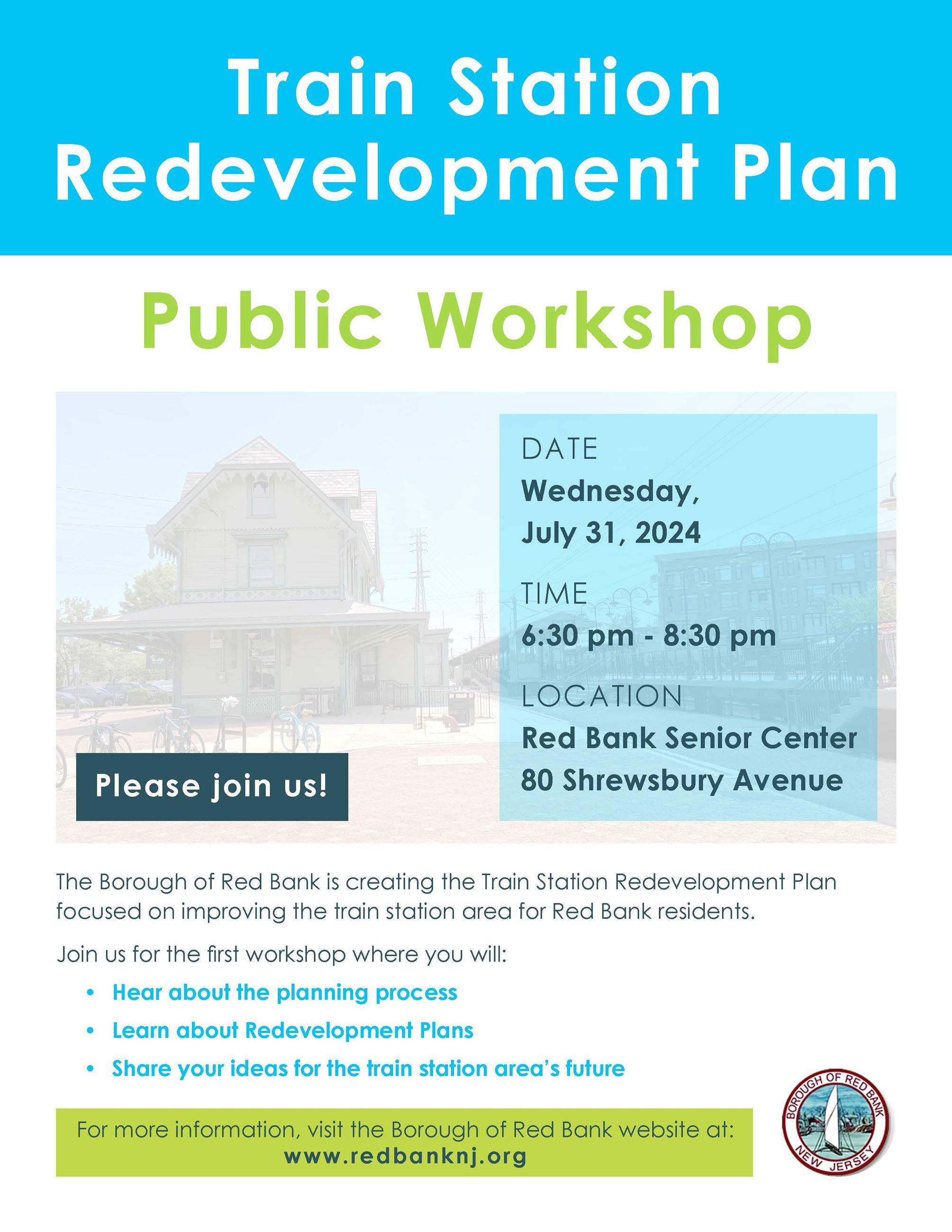 Join us for the first workshop where you will: • Hear about the planning process • Learn about Redevelopment Plans • Share your ideas for the train station area’s future