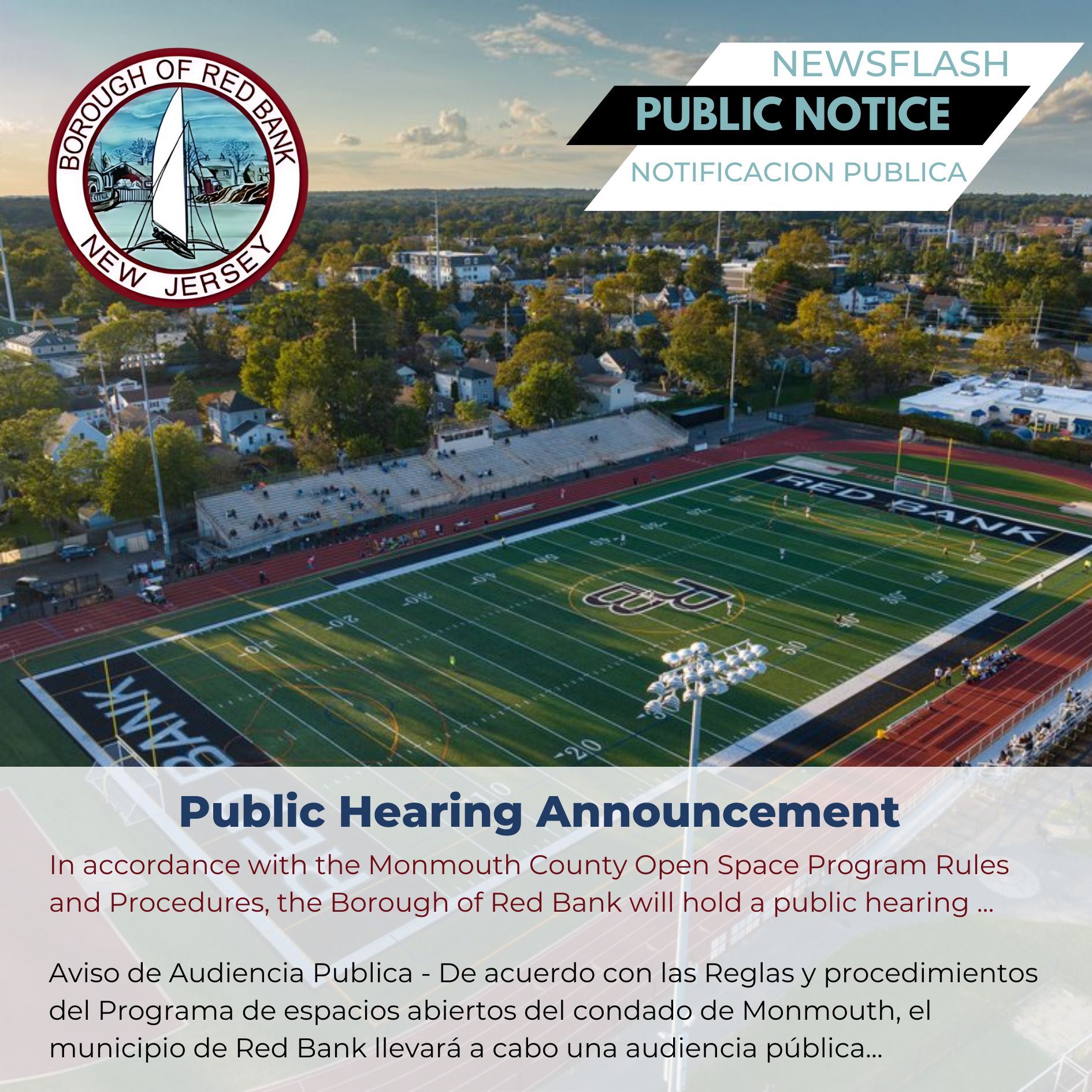 The Borough of Red Bank will hold a public hearing to invite resident input on a proposed grant application aimed at enhancing recreational opportunities at Count Basie Park.  The proposed project aims to provide additional funding needed to make park improvements in municipal parks and open space