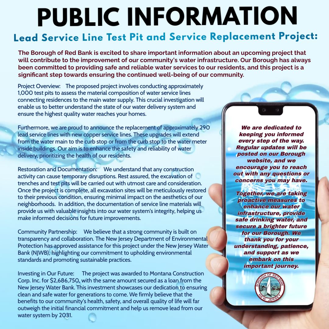 The Borough of Red Bank is excited to share important information about an upcoming project that will contribute to the improvement of our community's water infrastructure. Our Borough has always been committed to providing safe and reliable water services to our residents, and this project is a significant step towards ensuring the continued well-being of our community.